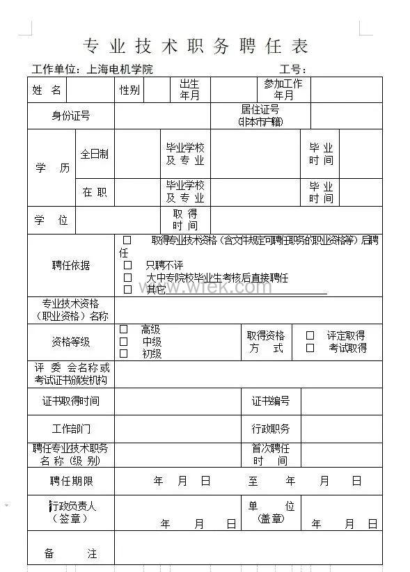专业技术职务聘任表