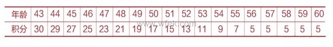 持证人年龄在56-60周岁,积5分;年龄每减少1岁,积分增加2分。