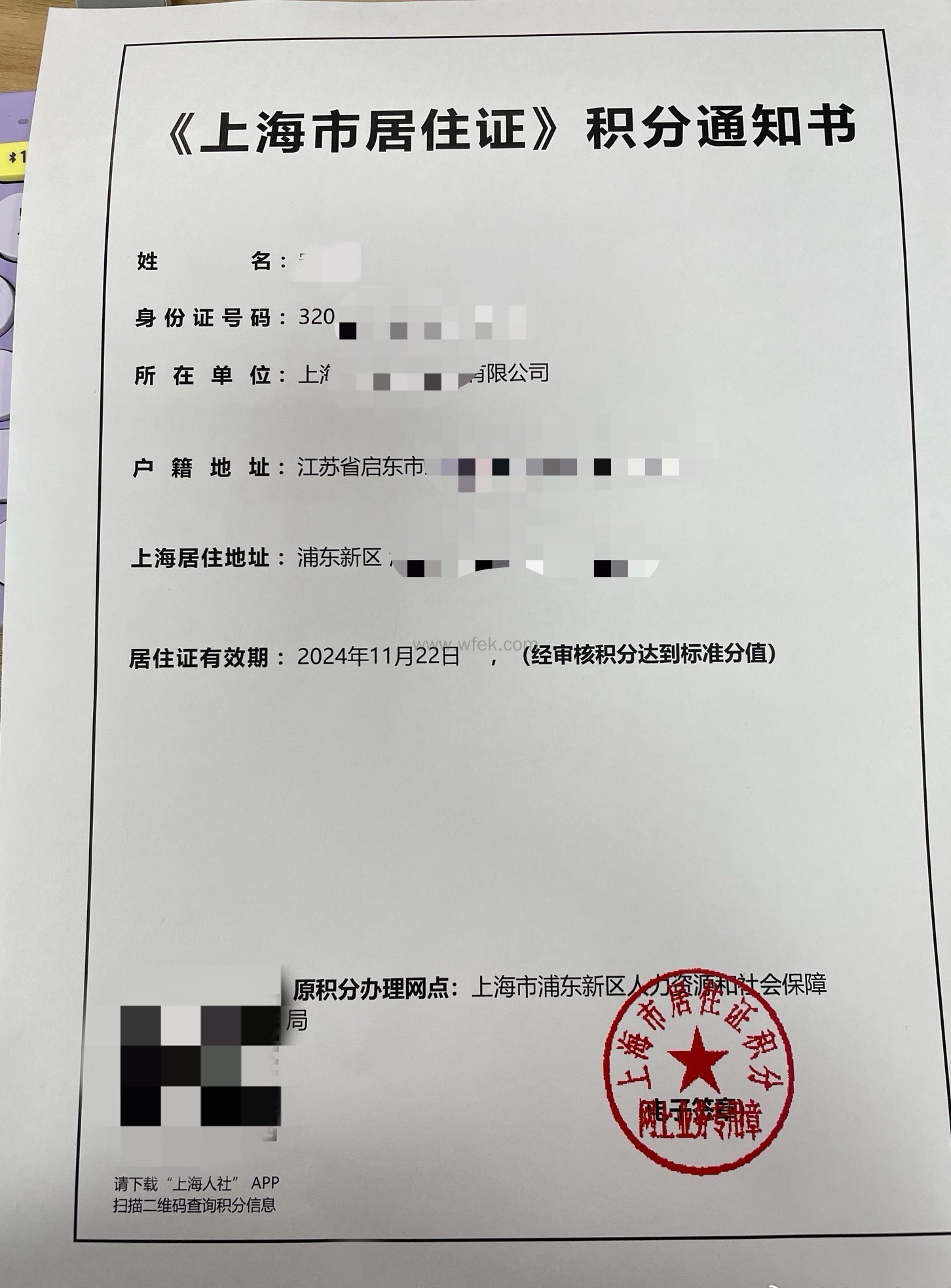 3、《上海市居住证》积分申请表(网上打印、表格上加盖单位公章);