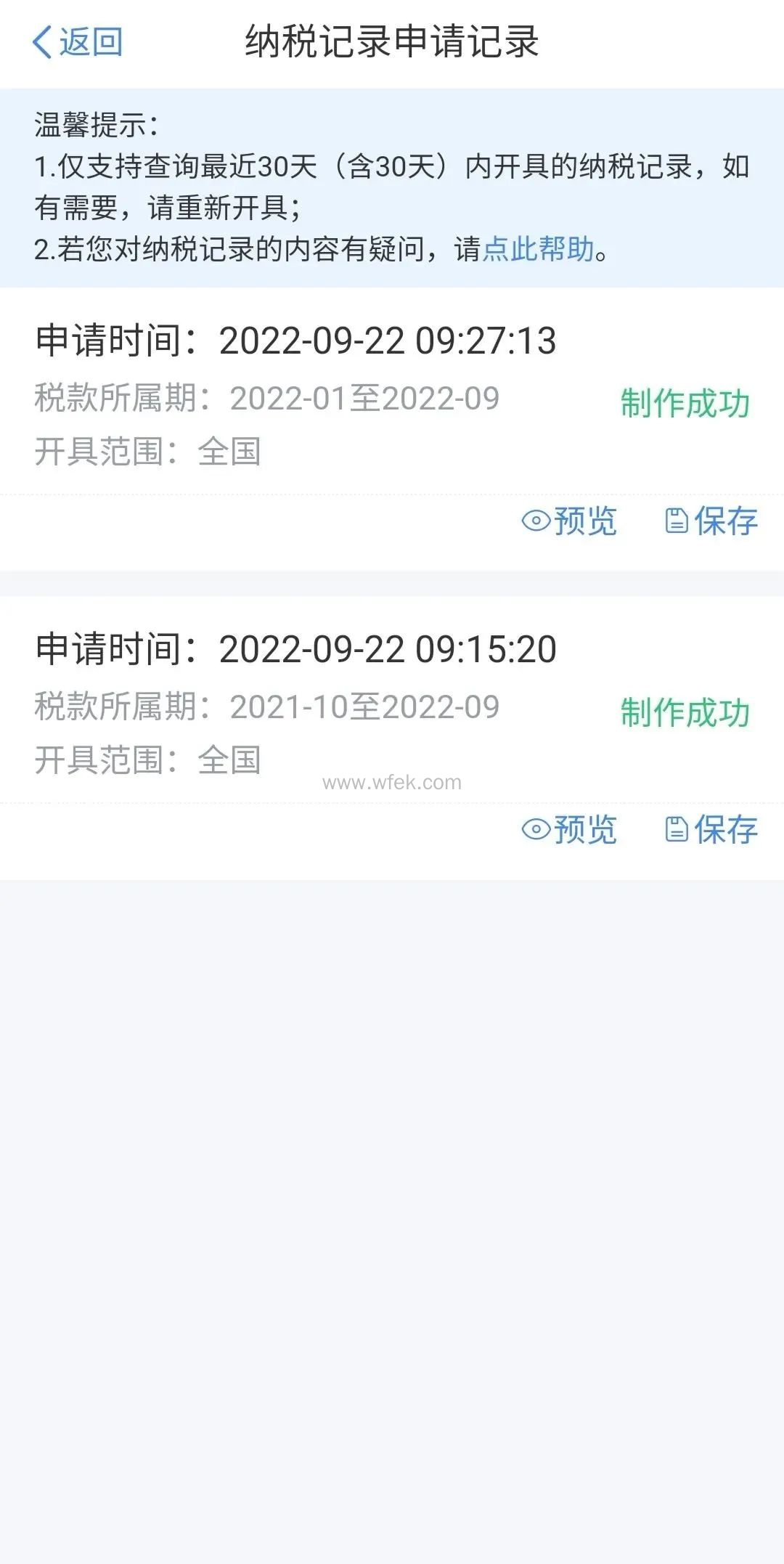 在这里可查询2019年1月1日及以后全国范围内的记录,并进行预览和保存。对纳税记录的内容有相关疑问,也可以点击页面上的“点此帮助”查看常见问题。