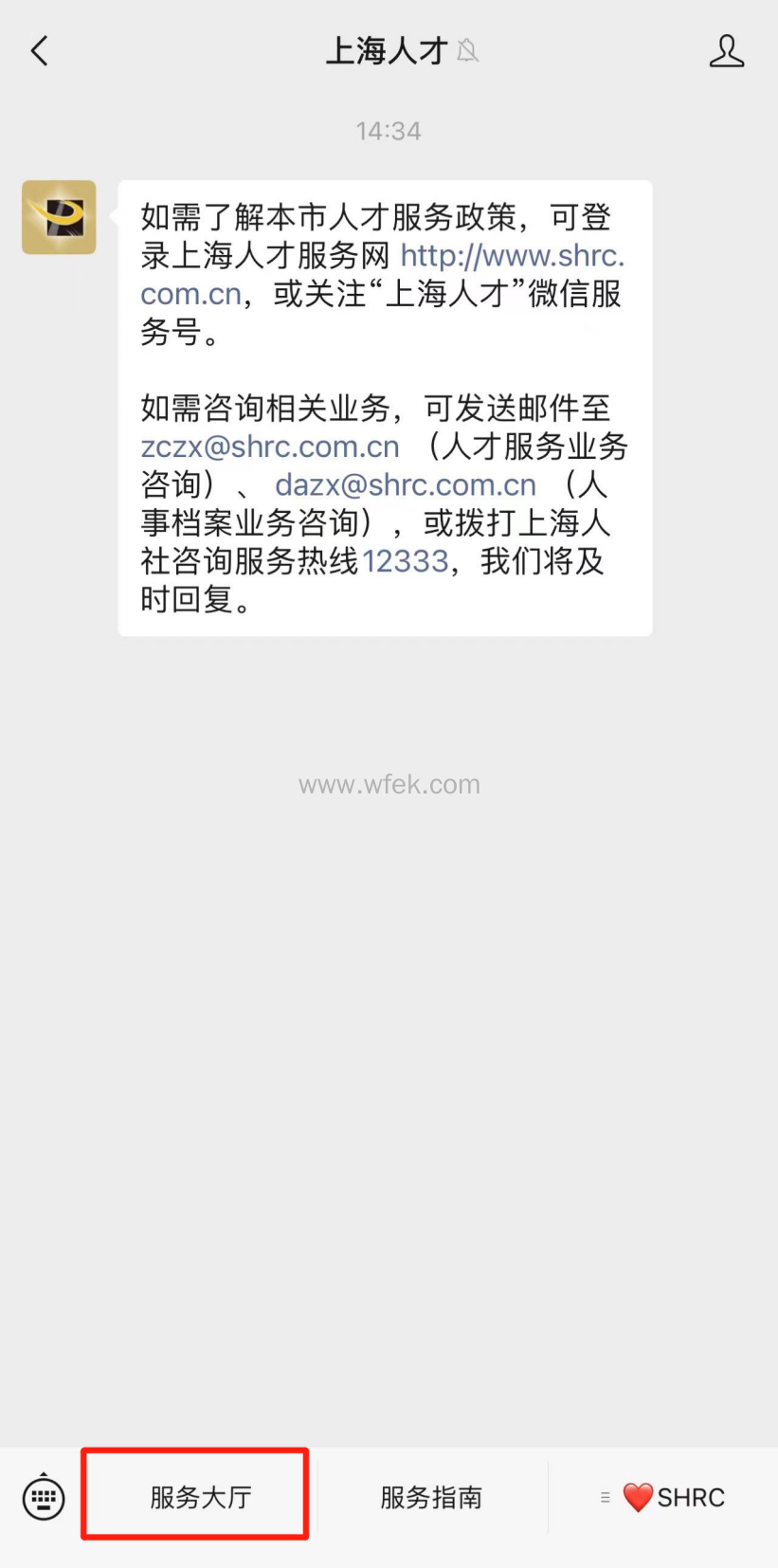 2、关注“上海人才”微信公众号,在菜单栏找到“服务大厅”,选择“业务查询”图标,点击“教育背景信息核实”,输入姓名、身份证号和发证机构进行查询;