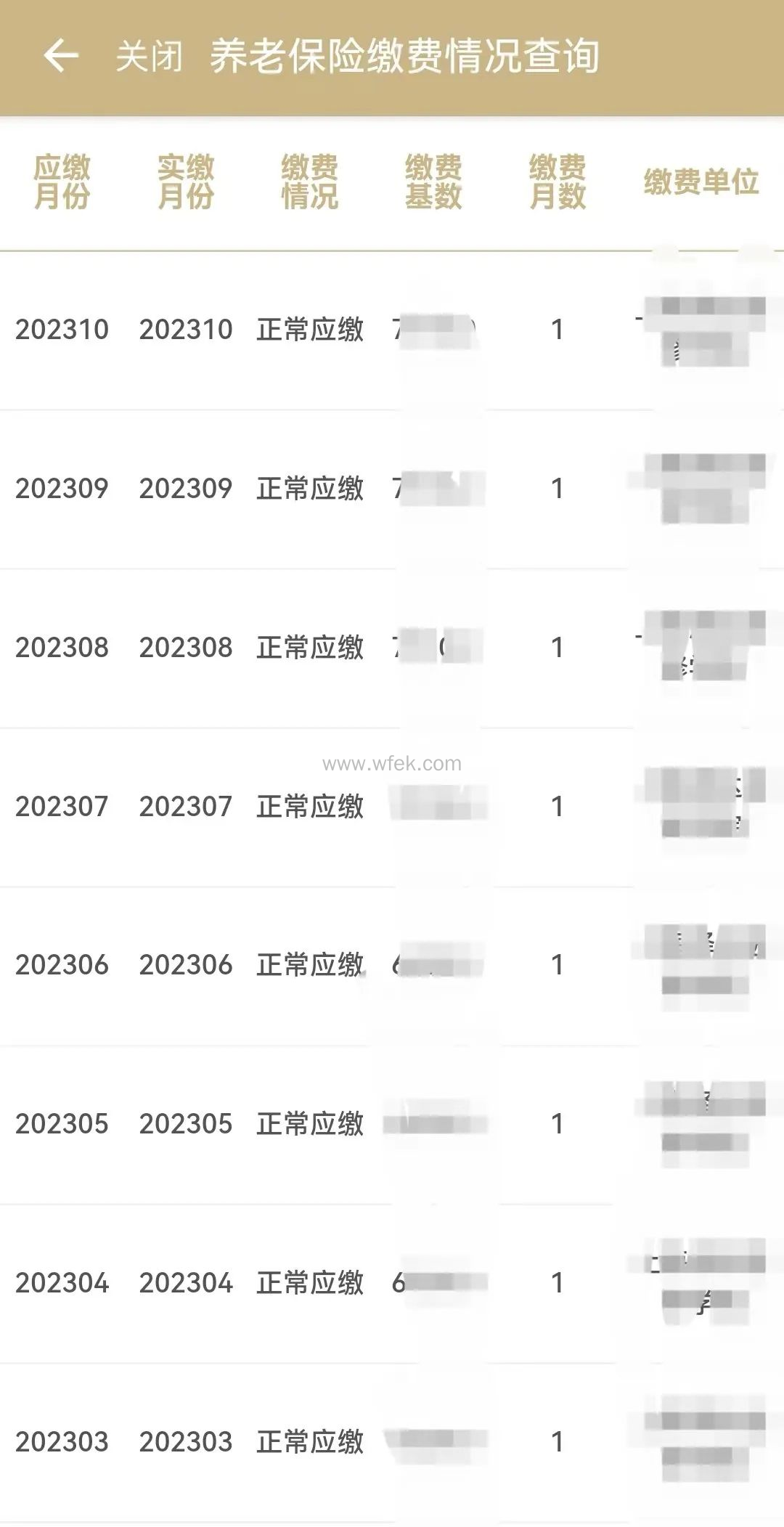 5、随机点击一年,就可以查看到每个月的社保缴费基数、缴费单位以及缴费情况。